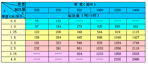 1、输送能力Qv值系按水平运输,动堆积角θ为20°,托辊槽角λ为30°时计算的。